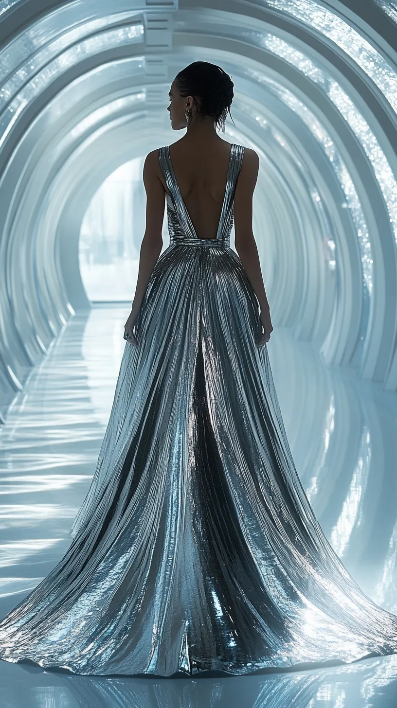 Sleek, reflective, and translucent fashion for a futuristic runway.