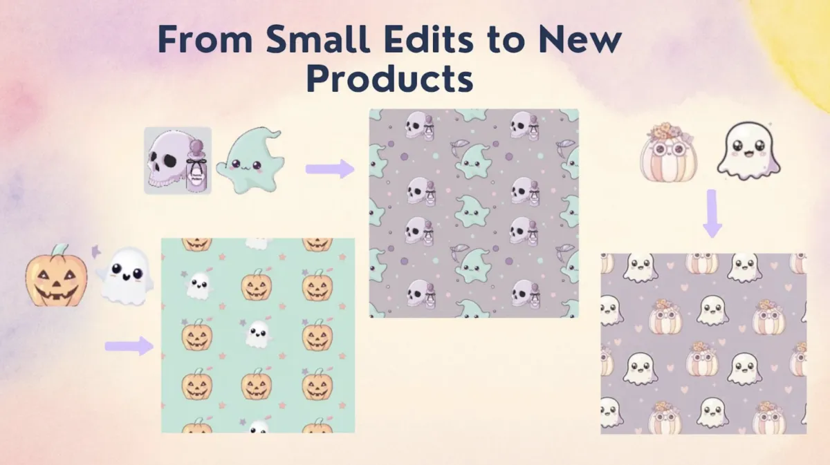 Edit & Upgrade Cliparts: Transform simple clipart into scroll-stopping styles like watercolor, kawaii, and coloring book. Add props, backgrounds, and color tweaks to build trend-driven packs.