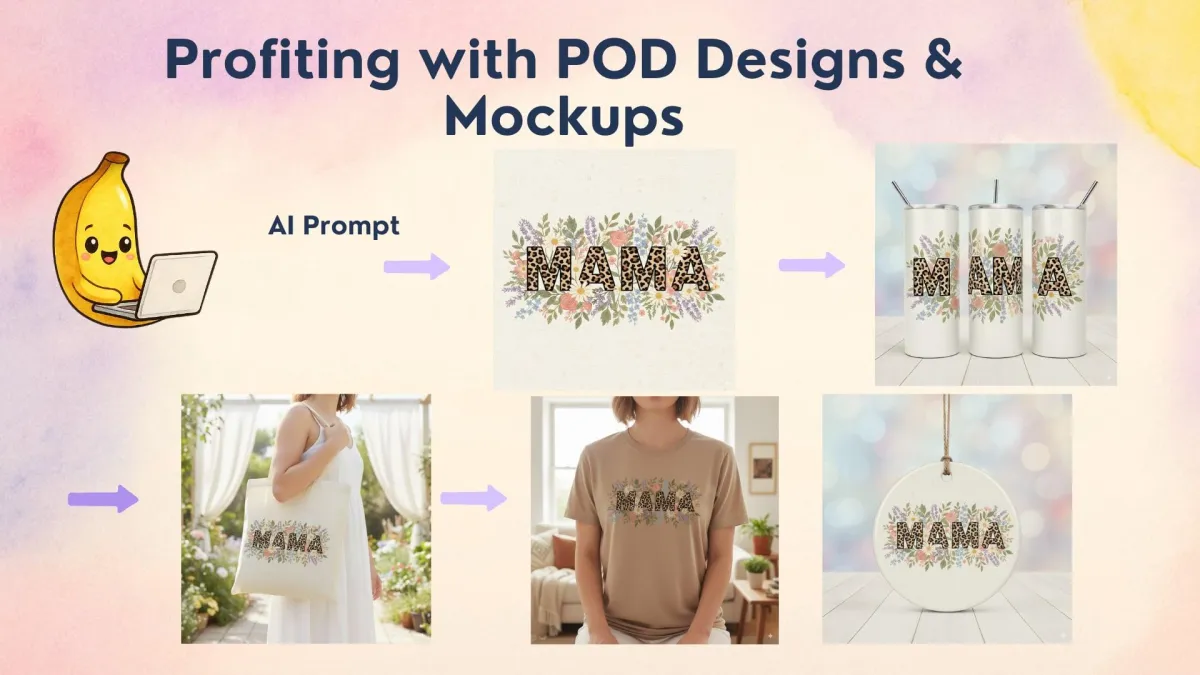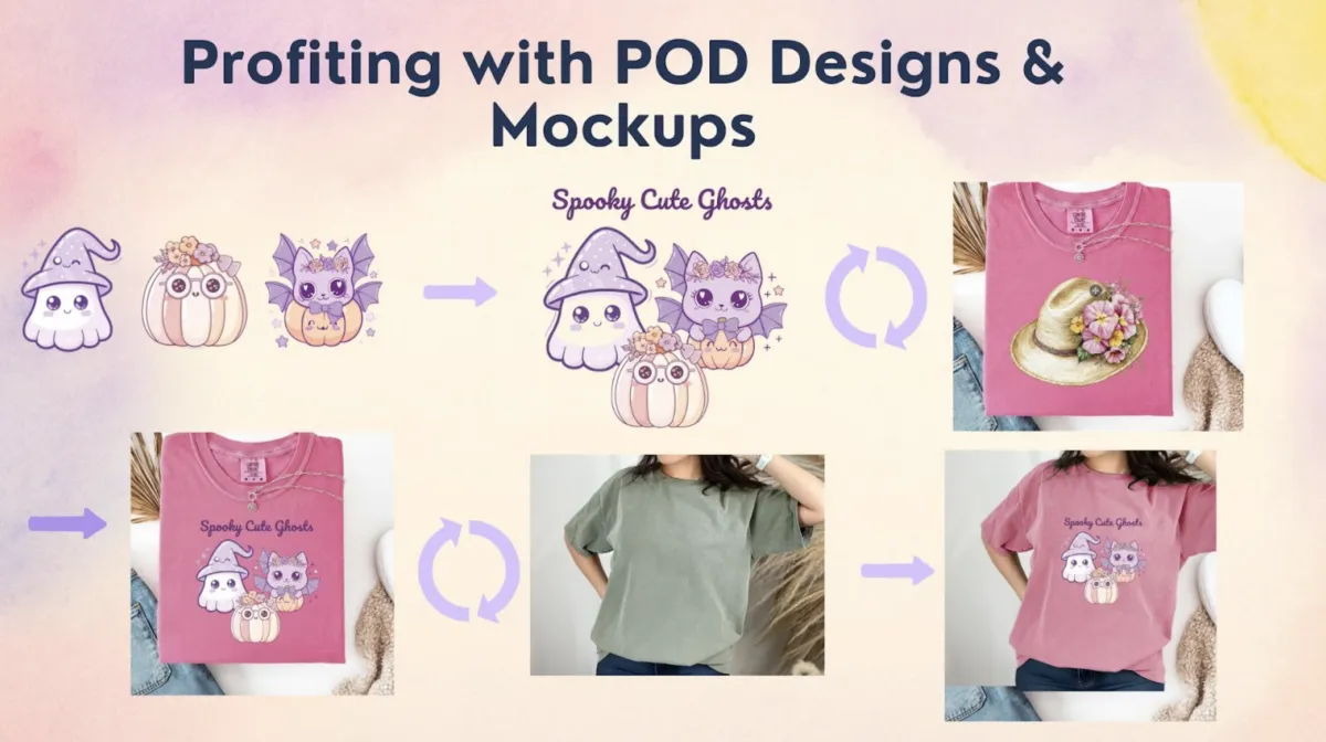 Profiting with POD Designs & Mockups: Generate t-shirt, mug, and tumbler designs in minutes. Then create instant mockups without any design experience.