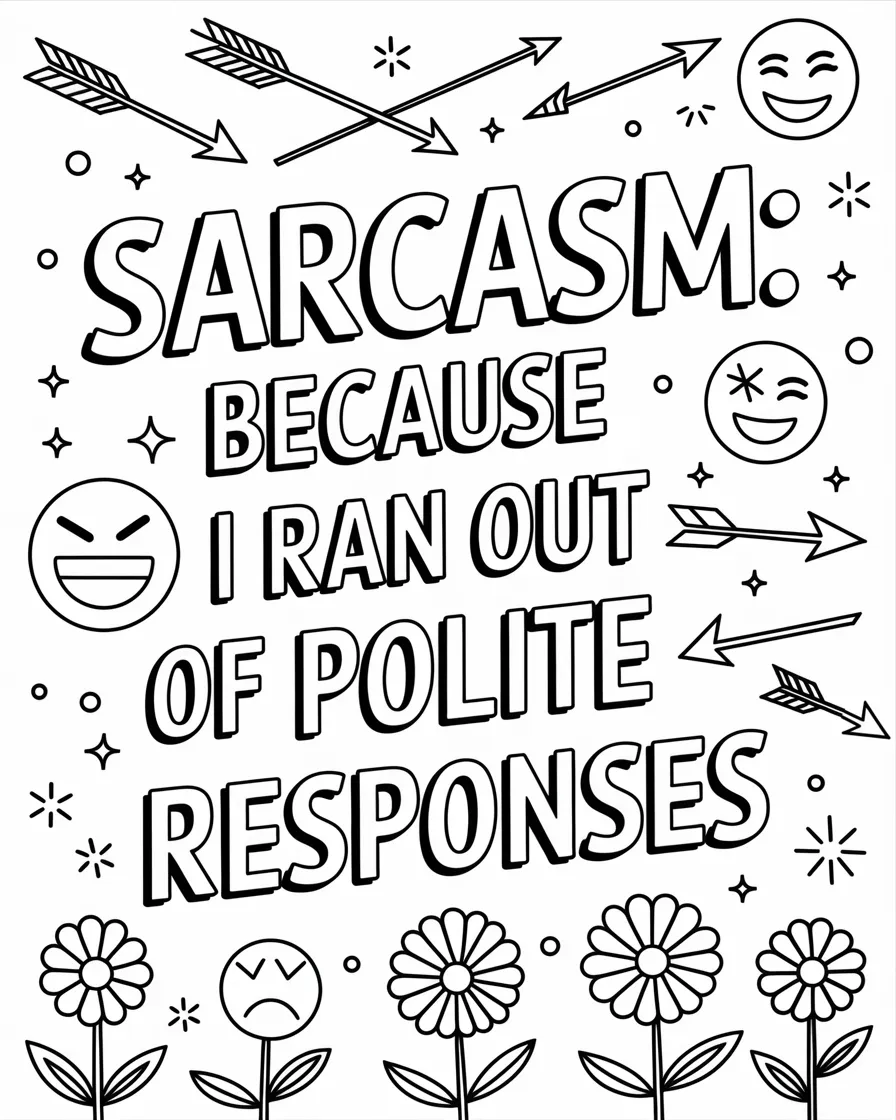 Introducing the "ULTIMATE Snarky & Sarcastic Coloring Page Prompt Pack"—2,615 hilariously irreverent, brilliantly biting prompts designed to turn your coloring sessions into a laugh-out-loud, stress-busting, creativity-unleashing extravaganza.