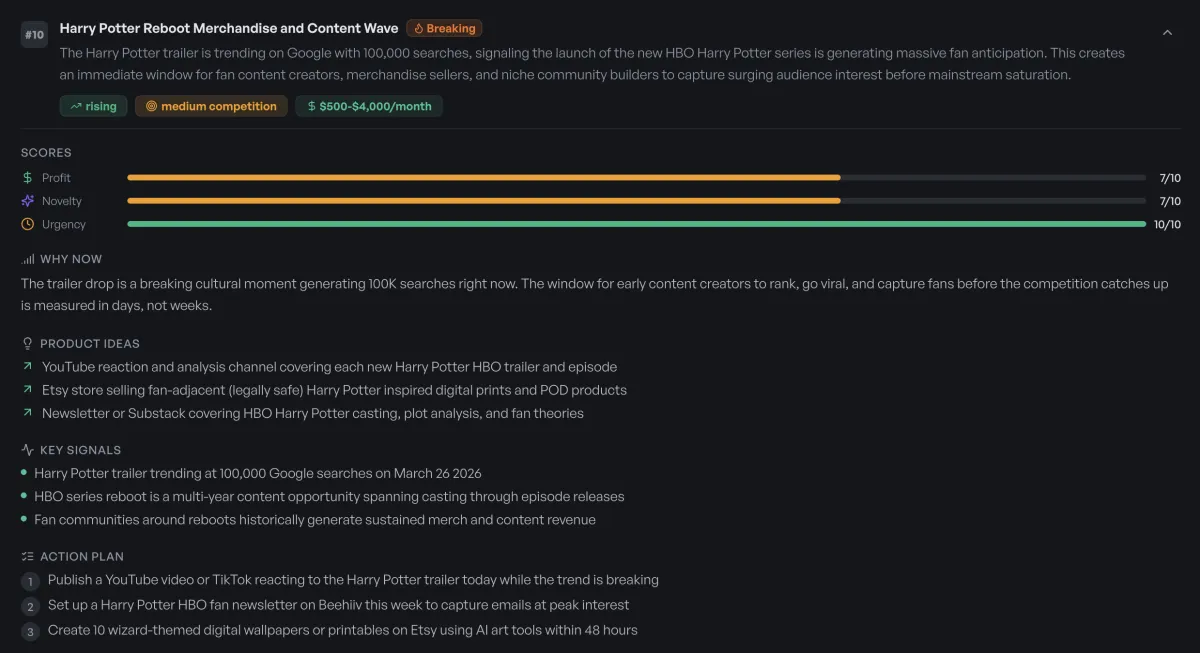 Right now, while you're reading this, some topic is exploding across the internet. And somewhere, a creator who spotted it first is already building the product, publishing the book, or recording the video that will ride that wave to the bank.